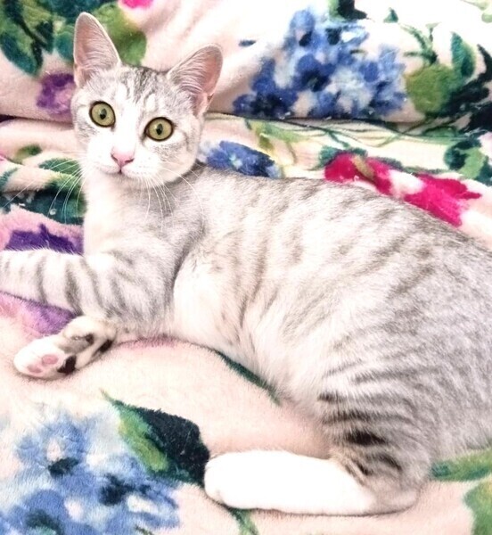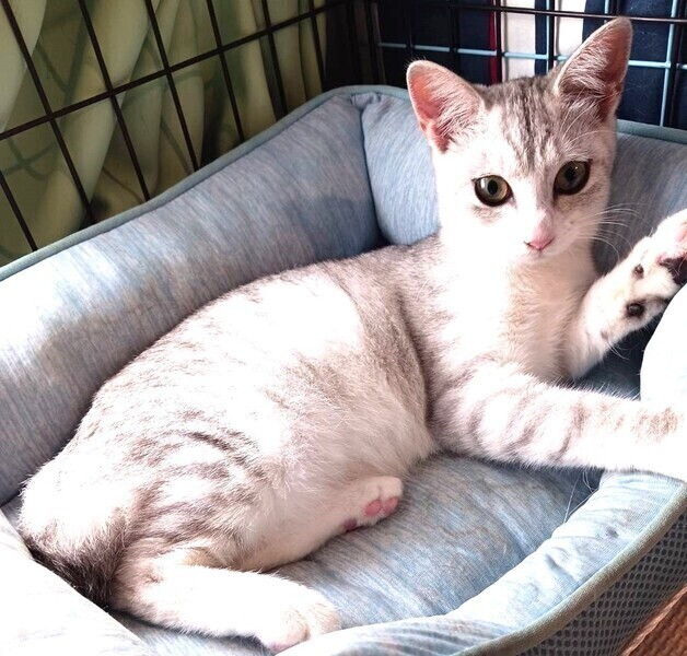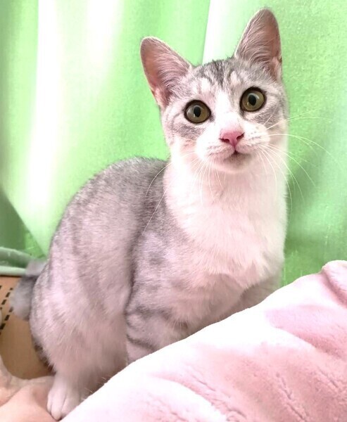 | 特徴(性格など) | 仮名: ソフィちゃん、メス 毛色: 淡いグレーの縞模様 性格: 子猫らしくボールやじゃらしで遊ぶのが好きで、ボールを追いかけて部屋中を走り回っています。 あまりお喋りではなく、ご飯の要求鳴きもせず、ひとりでケージの中でボールを転がして待っています 他猫との関係性ははっきりしませんが、自己主張するタイプではないので先住猫がいるご家庭でも大丈夫と思います。 検便済 駆虫済 3種混合ワクチン済 避妊手術は11月12日予定 猫エイズ・白血病ウィルス検査は共に陰性です |