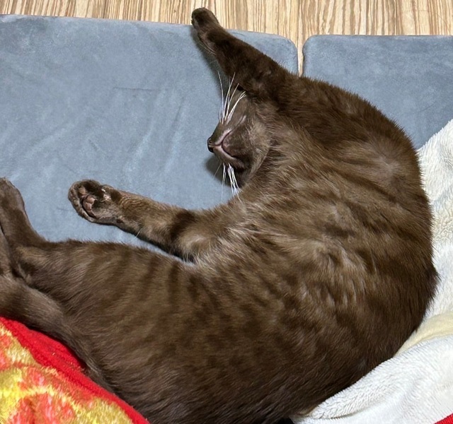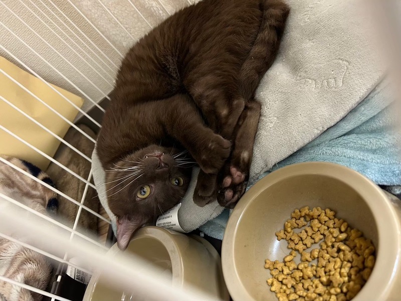 | 特徴(性格など) | 【特徴】 一見黒に見えますが、全体的にこげ茶の珍しい猫ちゃんです 【性格】 とっても元気に動き回ります 飼い主をニャーと言って起こしたり 耳元でゴロゴロ鳴らします 遊び疲れたら、隣で寝てくれます 人に対して警戒心はあまりないです |