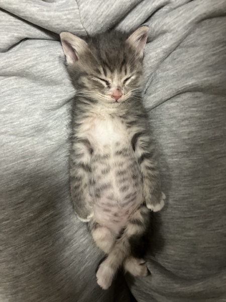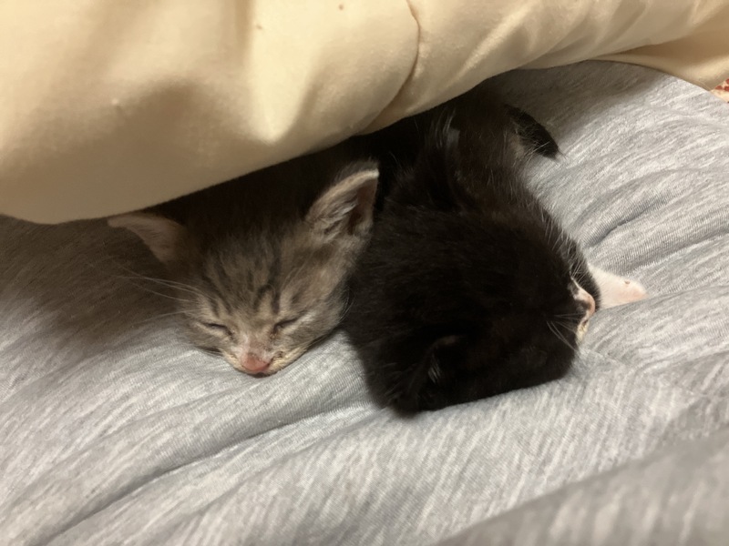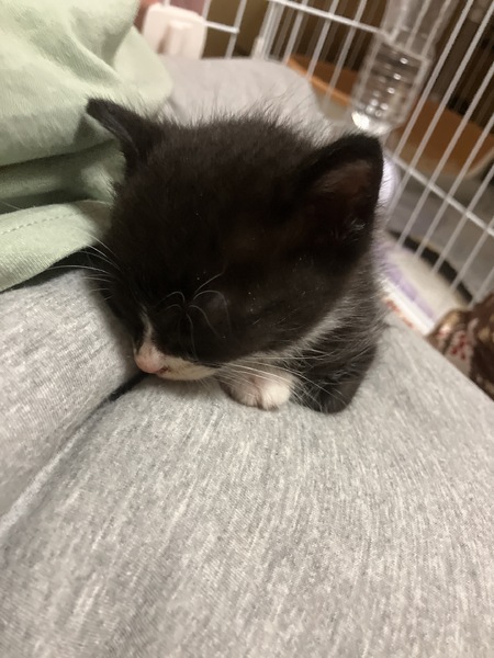 | 特徴(性格など) | 1枚目のオス(黒白)は好奇心旺盛で少しおっとりしているところもありますが、人懐っこく、鳴き声も可愛いです。 健康状態なのですが、保護したときにしっぽを怪我しており、継続治療が必要です(もしかすると切断しなくてはいけないかもしれません…) 2枚目のメス(グレー)は活発で人懐っこく、抱っこしたまま寝てしまうこともあります。 |