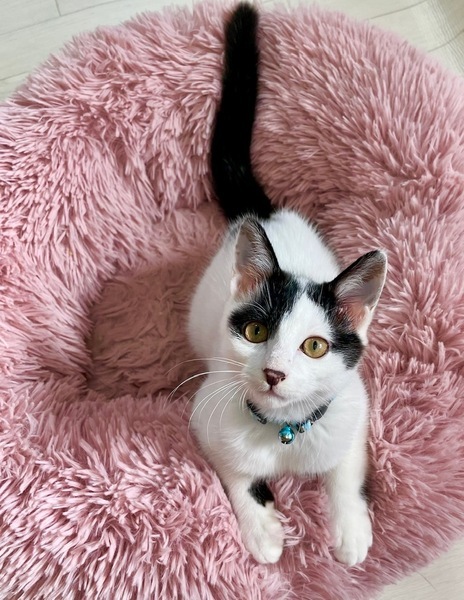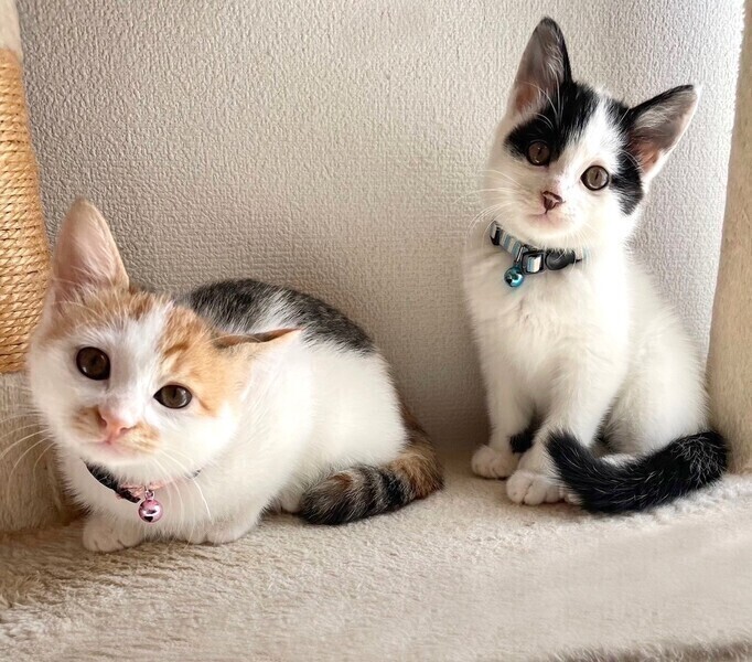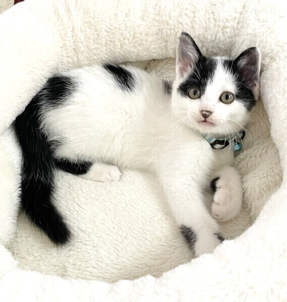 | 特徴(性格など) | 【仮名】らぶくん 【性格】鼻の模様が個性的な牛柄男子☆ シャイな所もありますがご飯の時には 可愛い声でアピールしてきます。 遊ぶの大好きで兄妹のあいちゃんと 元気に追いかけっこやにゃんプロしています。 さみしがりの甘えん坊でおネムの時の毛布を フミフミチュッチュする姿に胸キュンです! まだまだチビッコなので お留守番は少なめの方限定です! ぜひ兄妹と一緒のお迎えをお願い致します♪ ※1ピキ譲渡不可 |