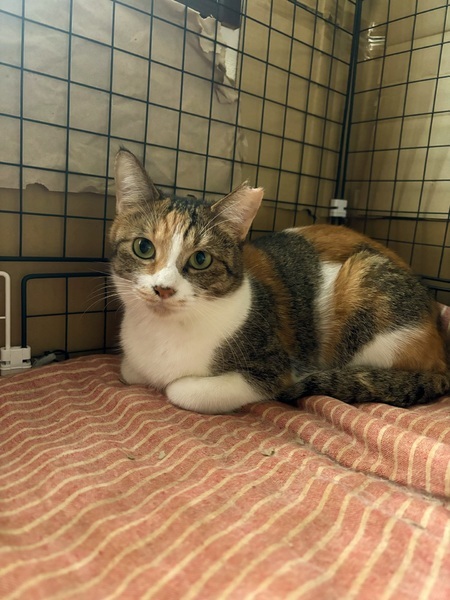 | 特徴(性格など) | ●色柄 三毛猫ちゃんです。 細かく言うと、パステル三毛、キジ三毛になります。 ●性格や特徴 お外で暮らしていた為、慣れるまでの警戒心は強いですが、心を許した相手には自分から擦り寄ってきたり撫でられるのも大好きな子です。 |