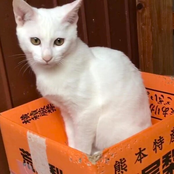 | 特徴(性格など) | 母親そっくりで、 きれいな白猫くんです 写真で分かりづらいですが、尾長です 性格は大人しいか臆病のようで、 ケージの中か天井に昇って 過ごしていることが多いようです 預かってから1か月ほど経ちますが、 ケージの中で過ごしていることが多いようです 耳ヤニが溜まりやすい体質の為、 定期的に綿棒で掃除をしてあげています ノミダニ寄生虫駆除済 トイレ躾OK |