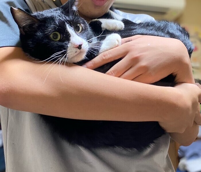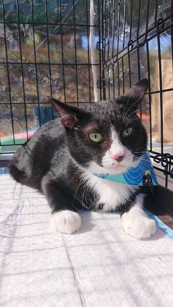 | 特徴(性格など) | 白黒ハチワレの男の子です。 とても控えめなにゃんこさんです。臆病なところもあります。 人馴れしてきました。 預かりさんには抱っこもブラッシングもさせてくれています。 |