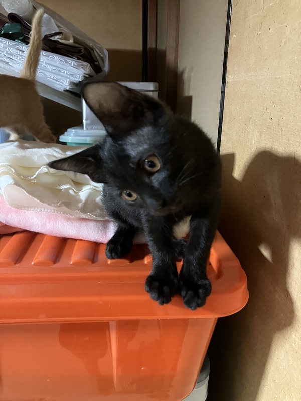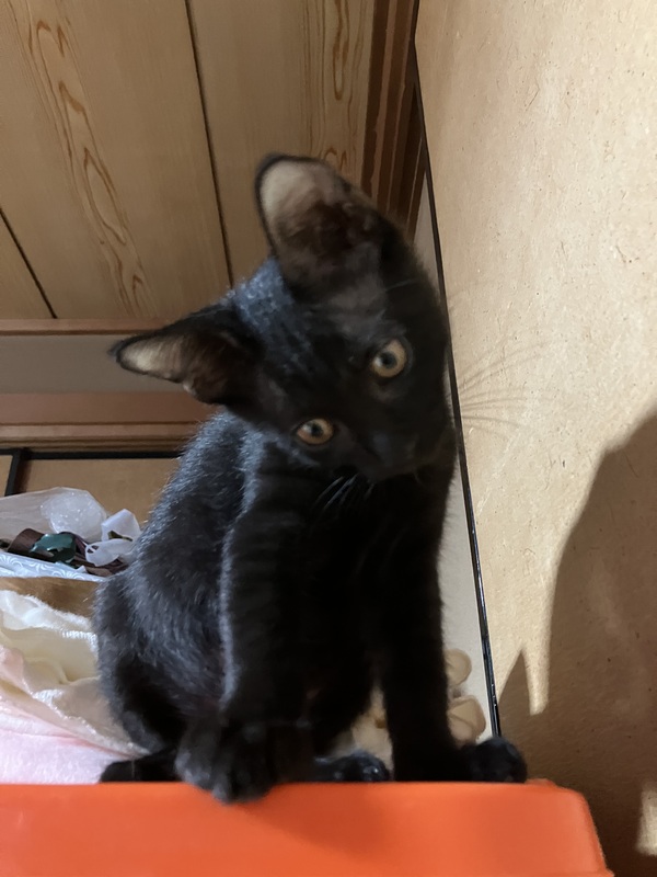 | 特徴(性格など) | 黒猫くくちゃん!しっぽが長くて綺麗な黒猫ちゃんです。 とっても甘えん坊で、膝の上から離れないほど、人懐っこいです。ゴロゴロ膝の上で甘える姿はとっても愛らしいです。 食欲旺盛で、食べて、遊んで、よく寝ます! |
