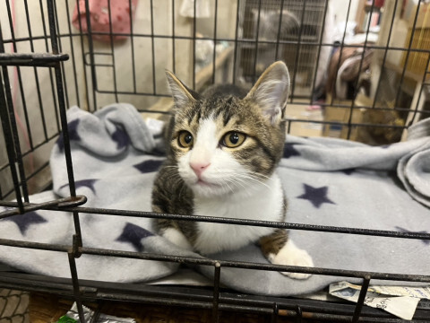特徴(性格など) | キジ白、3ヶ月くらいのオスです。 くりっとしたお目目のかわいい子♪ まるで女の子みたいで とにかくかわいぃ^_^ 尻尾はストレートロング。 交通事故に遭って、道路の真ん中に 倒れている所を保護しました。 幸い怪我もなく、すっかり元気です。 よく食べ、よく遊び、よく寝ます。 人馴れしていて、なでなでも抱っこも大好きで、ゴロゴロと甘えます。 健康状態は良好♪ ワクチン4種近日中に接種。 ノミ・ダニ駆除済み。 |