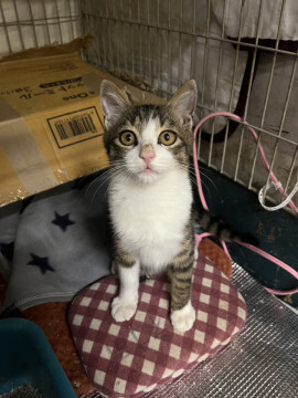 | 特徴(性格など) | キジ白、3ヶ月くらいのオスです。 くりっとしたお目目のかわいい子♪ まるで女の子みたいで とにかくかわいぃ^_^ 尻尾はストレートロング。 交通事故に遭って、道路の真ん中に 倒れている所を保護しました。 幸い怪我もなく、すっかり元気です。 よく食べ、よく遊び、よく寝ます。 人馴れしていて、なでなでも抱っこも大好きで、ゴロゴロと甘えます。 健康状態は良好♪ ワクチン4種近日中に接種。 ノミ・ダニ駆除済み。 |