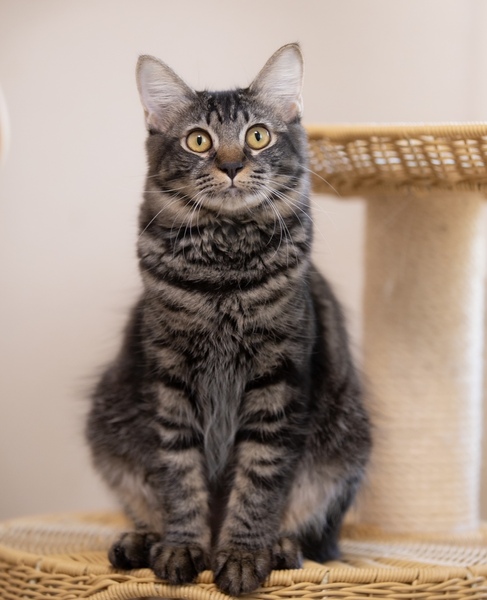 | 特徴(性格など) | 控えめで優しい キジトラの女の子です(^^) 甘えん坊ですりすり& 自らお膝に乗ってきて甘えてくれます♪ 毛の長さが将来的には 長毛になりそうですので ブラッシングなどお手入れが必要となります。 ワクチン接種 ウイルス検査陰性 駆虫・ノミダニ駆除済み |