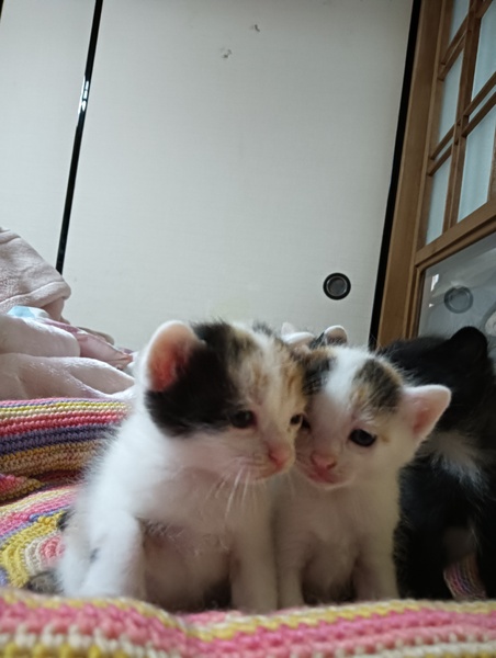 | 里親募集する理由 | シロマル母さんの子供達を里親さんに渡してしまった後、シロマルのメンタルがとてもおかしくなり、避妊手術を遅らせていた時に、私の仕事中にドアを開けて仲良くなって妊娠してしまい、出産させました。想定外ですが、とても可愛いです。私もよし頑張るよ。と言い聞かせています。 | ||