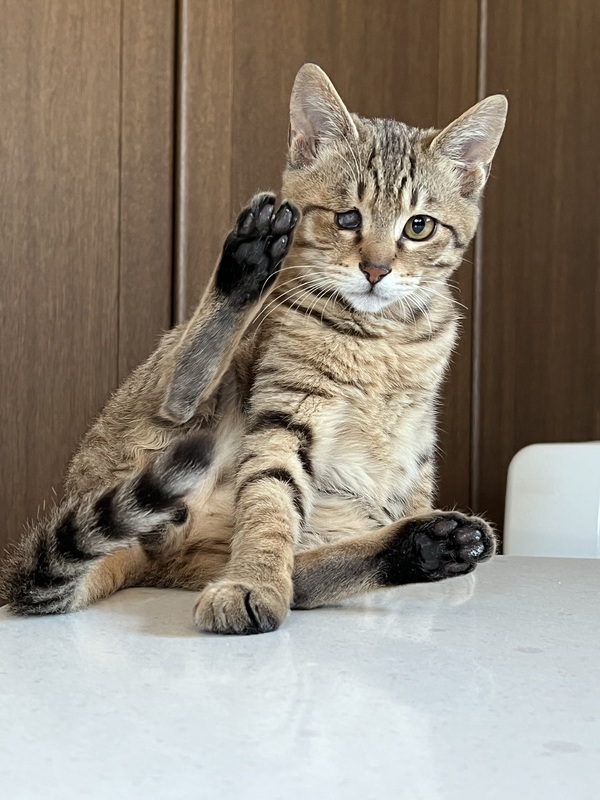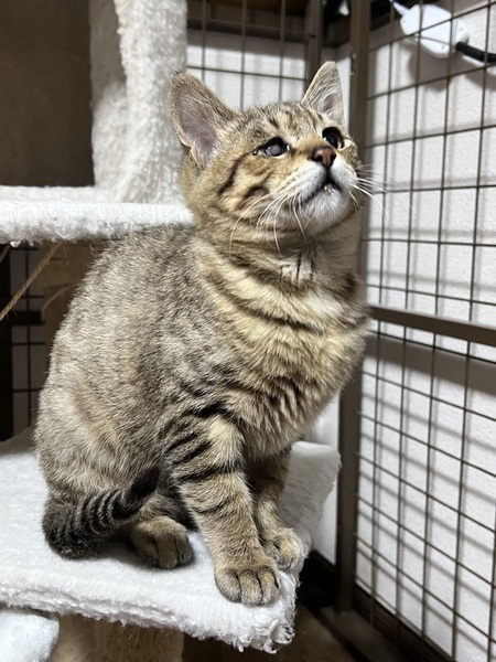 | 特徴(性格など) | ▪︎オレンジくん とても気が強い子です。 一週間お世話をしていますが、話しかけるだけでフーフー威嚇します。強がりですが、目薬もつけさせてくれます。将来は甘えん坊になるのではないと思います。 〜以下、トライアル決定しました〜 ▪︎緑くん こちらの子も気が強めです。 手を出すと猫パンチしてきます。しかしながら、ボールタワーやボール遊びが好きなようでタワーでボールを転がすと、人がそばにいても構わず遊んでいます。 ▪︎青くん オレンジくんや青くんとは、ずいぶんと性格が異なり、やさしくおっとりとした子です。少しビビリなところがあり、猫部屋へ入って行くと、いちばんに隠てしまいます。兄弟の中での順位が最後なのか、遠慮気味なのか不明ですが、ご飯を食べる時は他の兄弟が食べ終わったあと、最後にやってきて、ひとり食べしています。 まだボール遊びをしているところを見ことはないので、人のいる環境に慣れて、自由に遊べるよになると嬉しいと思う子です。 |