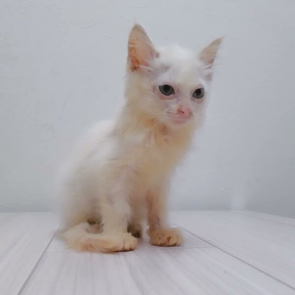 | 特徴(性格など) | 大人しくてとっても人懐こい性格で、ブラッシングや人に撫でられるのが大好きな女の子です。 仔猫用カリカリを良く食べ、排せつもスムーズです。 ◎生後2ヶ月ほど♀メス ◎トイレしつけ済み ◎乳歯アリ ◎ノミ・ダニ、お腹の虫、駆除済み ◎動物病院で抗菌&健康診断済み ◎沖縄県名護市で保護 ◎ウイルス検査…猫エイズ&白血病 陰性 ◎ワクチン接種…体重1kg未満のため未対応 |