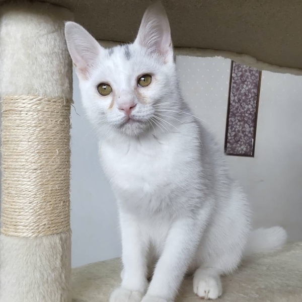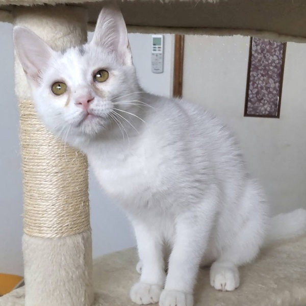 | 特徴(性格など) | 白猫の男の子、モカくん。 保護したときは風邪をひいていていましたが、今ではすっかり元気になりました。 おとなしく、甘えん坊で人が大好き。 手を差し出すとスリスリ甘えてくれます。 他の猫とも仲良くできます。 120gのときに保護され、ボランティアさんがミルクで育ててくれました。 なのでとても人慣れしています! かわいいモカくんを温かく迎えてくださる方を探しています。 当団体のホームページや他のサイトでも同時に募集を行っています。少しでも気になられましたら、どうぞお早めにお問い合わせくださいね。 |