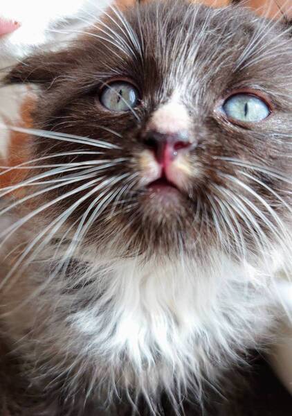 | 特徴(性格など) | セーヴル君(男の子)。サイベリアンとラグドールとミヌエットのミックス。緑ので、毛色、顔と全身が黒っぽく、手足の先とお腹そして鼻筋と口の上が白、背中と襟巻きがいぶし銀のようなブラックスモークです。とても人懐こくて、猫が大好きな男の子。この子のユニークな顔の模様を「世界でたった1つの模様」として溺愛してくださる里親さんを探しています。 (毛色は全然違いますが、ウチから里子に行った別の猫達(らいすちゃんとおもちちゃん)の里親さんのTikTokアカウントを掲載しておきますね。) 大抵の猫と同じく、セーヴルもブラッシングしてもらったり撫でてもらったりマッサージしてもらったりするのが大好きですので、頻繁にブラッシングやマッサージをしてやってください。 特にこの子は長毛なので、万が一毛がもつれたら、ブラッシングを痛がってブラッシングを嫌がるようになります。ブラッシングできなくなって更にもつれてフェルトのように固くなると、ペット用バリカンでも刈れなくなります。この場合、麻酔をかけてハサミでカットすることになりかねません。大人しい猫でも、ハサミでカットすると皮膚を切る可能性がかなり高くて、万が一首の頸動脈などを切ると死にます。正直、長毛の子、特にミヌエットの血が流れている子は、ブラッシングしないと怖いです。(今のところ、ブラッシングを忘れていたらちょっと毛玉ができたとラインの猫グループに書いていらっしゃった里親さんは2家族だけですが。) ウチの猫はいろいろな猫がいる多頭飼い環境で育っていて1匹飼いだと寂しがるので、猫好きの猫2匹以上で飼ってください。 1匹飼いがご希望の方は、生後2ヵ月頃から4か月頃、つまり子猫が周りの人間や猫、環境への対応を覚える社会化の時期に1匹だけで育った猫の方が1匹飼いに向いていますので、そちらの猫をご考慮くださいませ。この時期に1匹だけで育った猫は、他の猫への対応の仕方を知らないだけではなく、他の猫を「飼い主の愛情を自分から奪うライバル」と考えて敵視して猫嫌いになる子が多く、多頭飼いに向かない子が多いです。 逆に多頭飼いで育った猫は、ほとんどの子が他の猫がいないと寂しがります。 ウチは多頭飼いでわいわい楽しく育っていますので、必ず猫好きの猫と一緒に2匹以上(5匹以下)で飼ってやってください。 ペットではなく家族として飼ってください。 サイベリアンは犬的な性格もあり、家族思いで、飼い主が冷たいと早死にするとも言われています。 生粋のサイベリアンではないこの子でできるかどうかはわかりませんが、サイベリアンにボール遊びを教えれば、犬のようにボールを取って来るそうです。実際にウチの里親さんの中で、ボール遊びに成功なさったご家族もいらっしゃいました。サイベリアンとラグドールとミヌエットのミックスの女の子(ダイリュートキャリコ)が、犬のようにボールを口にくわえて取ってきていました。(笑) |