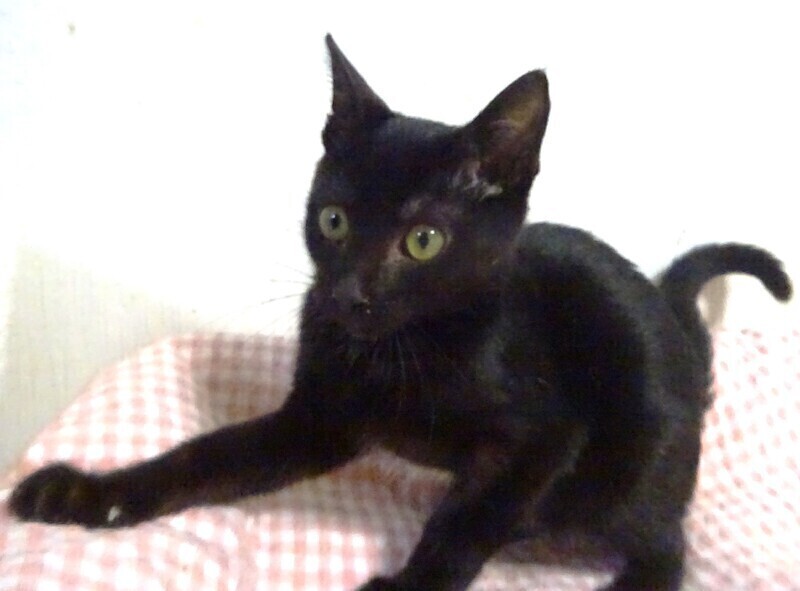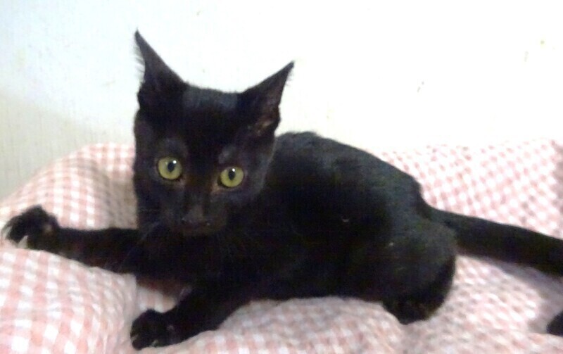 | 特徴(性格など) | 仮名: 美舞(みぶ)ちゃん、メス 毛色: 黒猫、胸に白のワンポイント 性格: 保護時は小さく威嚇し、奥に引きこもっていましたので、怖がりの面があると思います。 お母さん猫がとてもビビりで、慎重な子で人に近づけませんから似ているのかもしれません。 今は威嚇なく、触ったり抱っこ出来ますし、爪切り、薬も大丈夫です。 まだ抱っこでゴロゴロにはなりませんが、兄妹はゆっくりと甘えん坊になっているので、時間がかかるだけのような気がします。 兄弟の忍くんと一緒だと嬉しいですが、別々でも構いません。 ゆっくりペースに合わせてくださるご家庭を希望致します。 少し小柄なので、留守番時間は少な目のお家が良いかと思います。 お届けは千葉県内で車で1時間位を希望しています。 検便済 駆虫済 3種混合ワクチン済 猫エイズ・白血病ウィルス検査は共に陰性です |