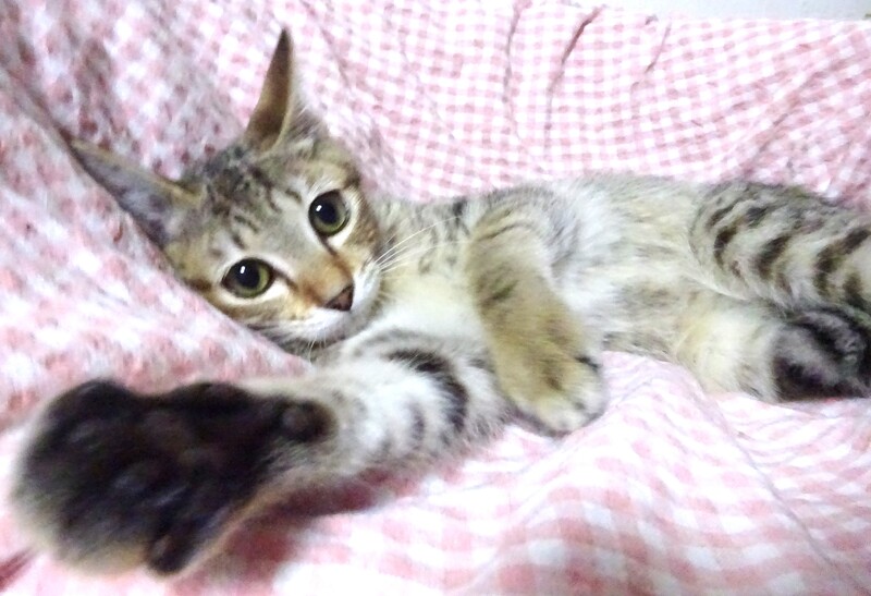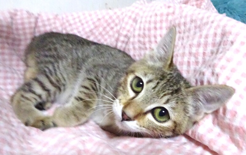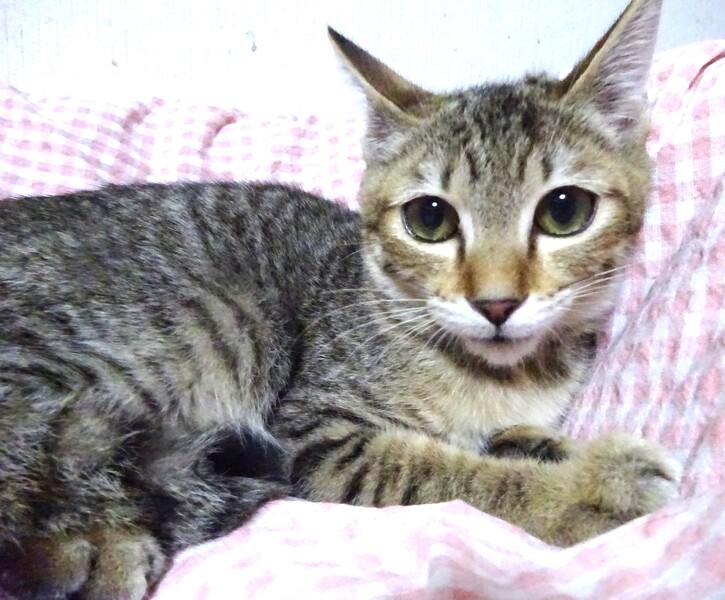 | 特徴(性格など) | 仮名: 忍(しのぶ)くん、オス 毛色: 明るめのキジトラ 性格: 保護時から威嚇して奥に引きこもっていました。 今は威嚇はやめましたが、まだ時々、唸り声をあげますが、口癖みたいな感じです。 唸っていてもお構いなく、抱っこしたりしているとやめます。 触ったり抱っこしたり、爪切り、薬は大丈夫です。 臆病なので、少しづつ仲良くなって、ゆっくりペースに合わせて育てて下さるご家庭を希望します。 兄弟のみぶちゃんと一緒のご縁があると嬉しいですが、別々でも構いません。 親が慎重で人に近づかないびびりで、小柄な子なので似ています。 オスにしては小柄です。 お届けは千葉県内で車で1時間位を希望します。 検便済 駆虫済 3種混合ワクチン済 猫エイズ・白血病ウィルス検査は共に陰性です。 |