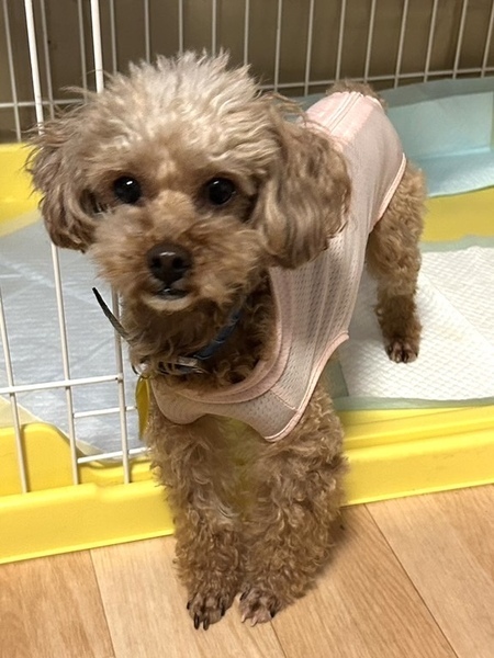 | 特徴(性格など) | 性別:メス 犬種:トイプードル 毛色:レッド 年齢: 2018年2月20日生まれ 体重: 3kg 性格:人が好きですが、怖がりです。 トイレ: 定位置のトイレではしませんが、よくする所にシートを置いておくと90%の確率でそこでしてくれる様になってます。 うんちは殆どが外排出になりました。1日4回外に連れ出していますが、朝と夜にする事が多いです。 散歩: 大好きです。お散歩行くよ!とハーネスを見せると喜んで玄関まで行く様になりました。お散歩は上手で、人の歩きに合わせて歩きます。 日常の様子:フリーにしておくと人の後(女性)をついて回りますが、目と目が合うと怖そうに後退りし、抱かれることを恐れて逃げます。特に男の人は怖いようで一切寄りつきません。 ゲージに入れると出してもらいたいのか吠えます。声帯は切除されています。 お手入れ:毎月のトリミング・毎日のブラッシング・歯磨き・耳掃除・涙やけケアなど ※トリミング犬種なので、必ず毎月1回サロンでトリミングをして可愛く清潔にして頂ける方、それだけの経済的余裕がある方を希望します フード: フィッシュ4 健康状態 フィラリア:陰性(-) ワクチン:5種混合接種済み マイクロチップ:装着済み 避妊・去勢:手術済み その他:触診・聴診・血液検査・検便、異常なし、駆虫薬投与・ノミダニ駆除済み・スケーリング済み 特記所見:声帯が切除されています。将来気管の病気になる可能性があります。 |