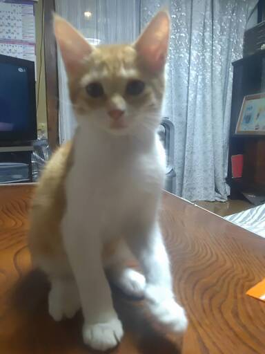 | 特徴(性格など) | 茶白です。 元気過ぎるくらいやんちゃ 気に入ったオモチャは離さないです。 人や猫が好きで、じゃれあうのが大好きで抱っこOK 駆虫済み |