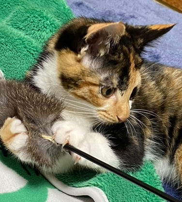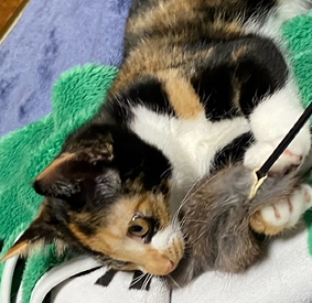 | 特徴(性格など) | 仮のお名前はネモちゃんです ミックスの三毛の女の子 2024年8月頃生まれ、3,5ヶ月、雌、体重1,3kg、 エイズ、白血病陰性、三種混合2回接種済み。 子猫ですので避妊手術はしてません。 甘えん坊な子です。かまってちゃんなので 頻繁に遊べる方がおすすめです。 抱っこはあまり得意ではないのですが 添い寝は得意です 遊ぶのは好きなのでオモチャさえあれば ずっと遊べます。 同時募集のニモ君とは兄妹です。 |