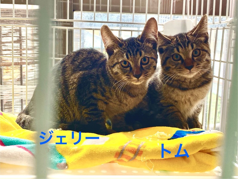 | 里親募集する理由 | 9月末頃に母猫が現れて仔猫が4匹居るのも確認、離乳することを待って保護と捕獲の準備をしている時に子猫が7匹であることがわかりました。一度に保護するのが難しく2回に分けて保護。 そのうちの2匹がトム&ジェリーです。 |