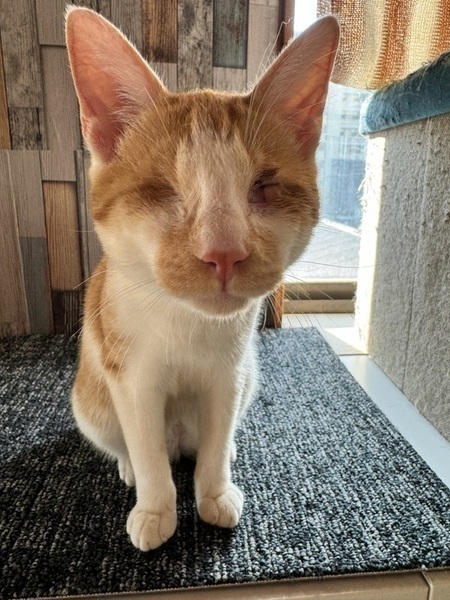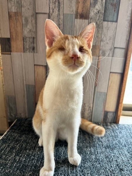 | 特徴(性格など) | ◆シュガー 茶白猫 男の子 全盲 【性格】 本当に全盲なの?と思ってしまうくらい行動力もあり、ヤンチャな男の子です。甘えん坊なところもあります。 ポジティブすぎて、こちらがヒヤヒヤしてしまうこともあるくらい何でもできちゃいます。 おめめが見えないことが原因か、元々の性格なのか他の子と遊ぶときに少し激しくなるため、先住さんがいる場合は若い子の方が良いと思います。 普段の様子についてインスタグラムをご覧ください。 https://www.instagram.com/sharehouse.t_room 【健康状態】 ・2024年5月下旬頃生まれ ・ウイルス検査陰性(エイズ・白血病) ・寄生虫駆虫済 ・3種ワクチン接種済(2回) ・その他血液検査 ・去勢手術済 ・マイクロチップ装着済 保護時から両眼共炎症があり、右眼は角膜に穴が空いていて、左眼は眼球萎縮が始まっている状態でした。 2024.9月末に右眼の眼球摘出手術を行いました左眼は完全に萎縮してしまったため摘出はせずにそのままでいいとの獣医師さんの判断で摘出手術はしていません。 左眼は涙が出てしまうときがありたすので、ちょっとだけケアが必要になるかと思います。(目薬など) 完全に視力を失ってしまった全盲の子ですが、日常生活はみんなと同じように何でもできちゃいます。 おトイレの失敗もありません。高いところに登って降りれないときは鳴いて助けを求めます。 健康問題は心配なく健康優良児です。 ★全盲のためお留守番がないまたは、お留守番が短いおうちを希望致します。 |