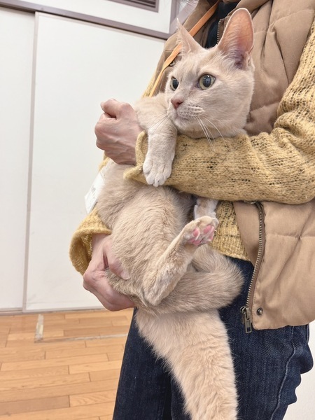 | 特徴(性格など) | とても綺麗なベージュ色の毛並みのイケメン君。のんびりした性格で、ひとりでゆっくりしているのが好きみたいです。穏やかで優しく、ゴロゴロ喉を鳴らして寝転んで呑気に過ごしています。 同時掲載のギー君と兄妹 FIV陰性 FeLV陰性 検便済 ノミダニ駆除済 トイレ問題無 あかし動物センター多目的ホールで行われる「おとな猫譲渡会」に参加します。 9/27(土)・10/25(土) 13時から15時 |
