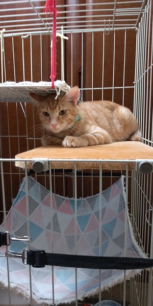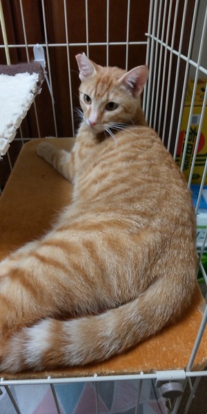 | 特徴(性格など) | ナデナデが大好きですが、抱っこは嫌がります。チュール等のおやつは手から食べてくれます。 トイレは初日からバッチリで、今はゲージで様子をみていますがもうそろそろ解放してもいいかなという慣れ具合です。 食欲もあり、おっとり、おとなしめ男の子です。 |