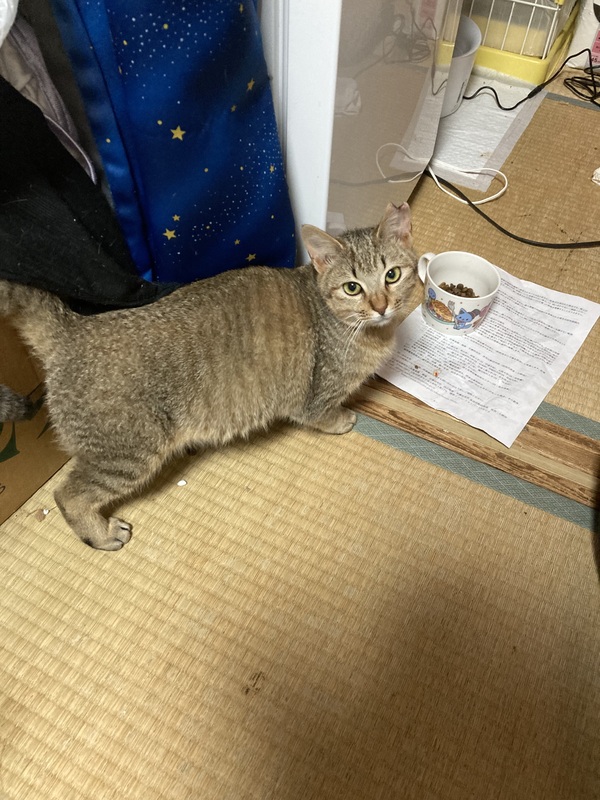| 里親募集する理由 | 知人の庭に親子で現れたため保護しました。母猫はTNR済み。保護時から足が3本しかありませんでした。後ろ左側足がの先が欠損しています。 食欲もあり、元気に遊びます。階段は登れますが、高いところから降りる時は痛みがあるのか鳴きます。 |