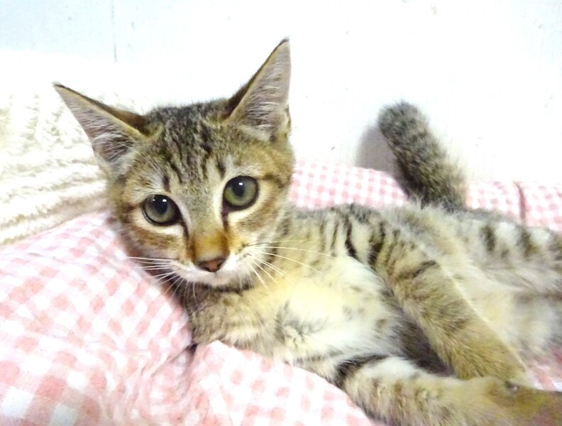 | 特徴(性格など) | 仮名: 忍くん、オス 毛色: 明るめのキジトラ 性格: 保護時は威嚇して奥に引きこもっていましたから、ビビりです。 威嚇をやめてからは唸り声をあげ、口癖のようになっていましたが、最近は唸り声もやめたようです。 唸り声をあげても攻撃性はなく、抱っこ出来るので爪切りは大丈夫です。 兄弟の美舞ちゃんと一緒のご縁があると嬉しいですが、別々でも構いません。 最初はご飯も人が見ていると食べられませんでしたが、最近はご飯でちゃんと出てきて食べます。 まだ食が細く、大人しく激しいプロレスもないので、ご飯の量も少な目です。 抱っこすると少し喉をゴロゴロ言います。 ゆっくりと馴れているので、忍くんのペースに合わせて馴らして下さるご家庭を希望しています。 お届けは千葉県内で車で1時間位を希望します。 検便済 駆虫済 3種混合ワクチン済 猫エイズ・白血病ウィルス検査はともに陰性です。 |