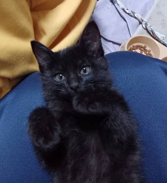 | 特徴(性格など) | 黒猫2匹とキジトラ2匹の4きょうだいです。 食いしん坊でまんまるな黒猫くん。 ちょっぴりびびりな黒猫くん。 泣き虫で甘えん坊なキジトラくん。 おとなしめ女の子のキジトラちゃん。 4匹とも元気いっぱいに走り回り仲良しです。カリカリも食べています。トイレもできます。 |