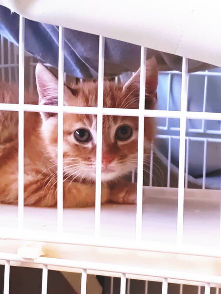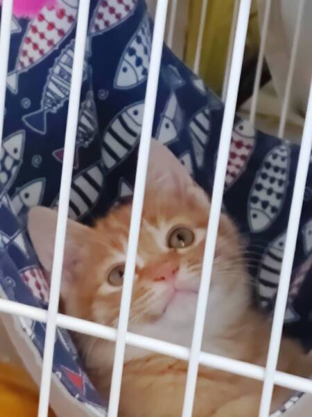 | 特徴(性格など) | ●猫の特徴など 仮名:チョビちゃん 特徴・性別:茶トラ オス 年齢:2024年11月8日時点で生後1ヶ月半くらい まだまだ威嚇はしますが、トイレの失敗もなく、猫じゃらしやオモチャでも遊ぶようになりました。 自宅には高齢の猫が4匹いるため連れて帰ることが出来ず、職場事務所で保護しています。 そのため夜はケージの中で独りぼっちです。 土日祝日の仕事が休みの日は事務員さんと交代でお世話に通っています。 ●健康状態 良好。 ご飯もよく食べて元気です。 トイレの失敗も有りません。 |