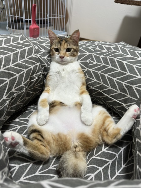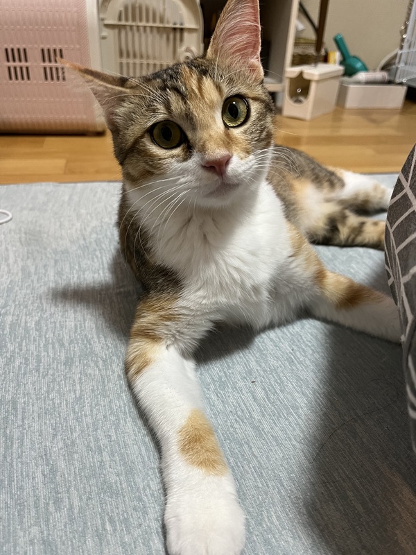 | 特徴(性格など) | まだ子猫のあどけなさが可愛い三毛猫の女の子です。猫じゃらしで遊ぶ事が大好き、ご飯大好き、人が大好き、とっても元気な甘えん坊です! |