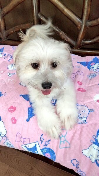 | 特徴(性格など) | 毛色は白、モップのように長い毛足、甘えん坊で人懐っこい性格です。 | ||