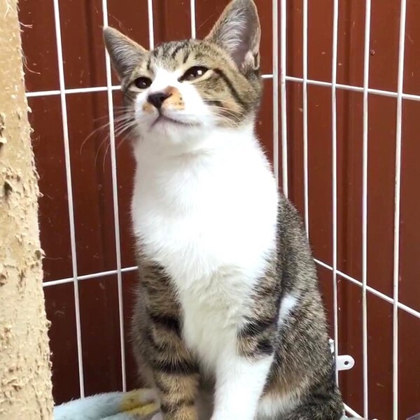 | 里親募集する理由 | 近くの介護施設で可愛がられていた 母猫がこの子を含め4匹産み落としました まずは母親の白猫の避妊手術を受けさせたいとの相談を いただいたため、子猫たちも一緒に保護することに致しました |