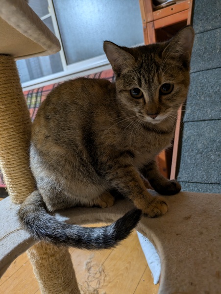 | 特徴(性格など) | キジトラの女の子。臆病ですがおもちゃで遊ぶのが大好きですゆっくりと付き合って頂ける方 | ||