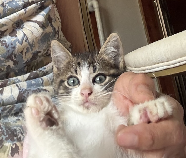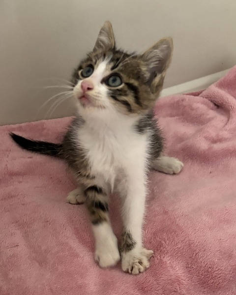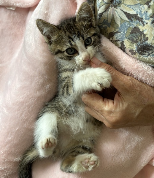 | 特徴(性格など) | キジ白で白いアイラインが涼しげです とても元気いっぱいでよく食べて走り回っています ノミ ダニ 駆虫済み 600g少ししかないのでウィルス検査 ワクチンはまだです |