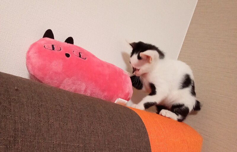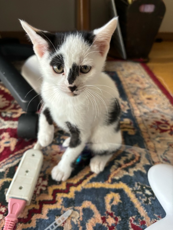| 特徴(性格など) | 白黒コアラ猫です。人懐っこく甘えん坊。 仮名を呼ぶと、にゃーんと鳴いて返事をします。 天真爛漫な癒し猫です。 |