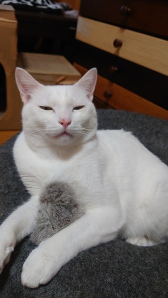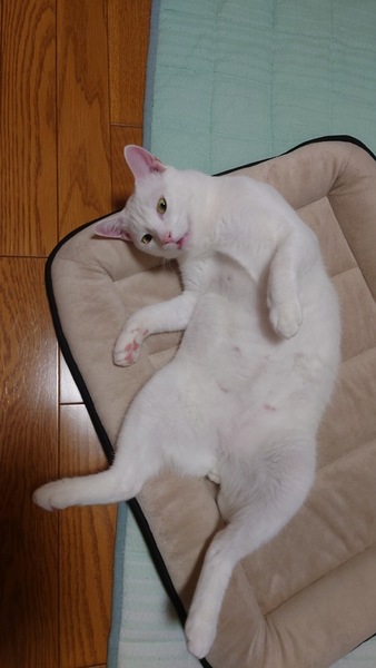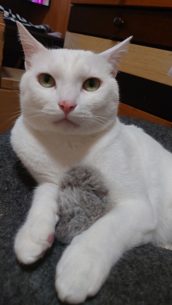 | 特徴(性格など) | 白猫です!臆病で甘えん坊な性格です。 独占欲が強いので1匹飼いでお願いします! 猫エイズ・白血病共に陰性 検便検査 済 血液検査 済 去勢 済 どんなフードもわりと食べます。遊ぶのが大好きな元気な男の子です!可愛いです。 慣れると飼い主大好きなストーカー猫になります。 |