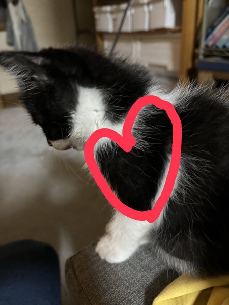 | 特徴(性格など) | ハート模様のハチワレです。 人懐こいです。 |