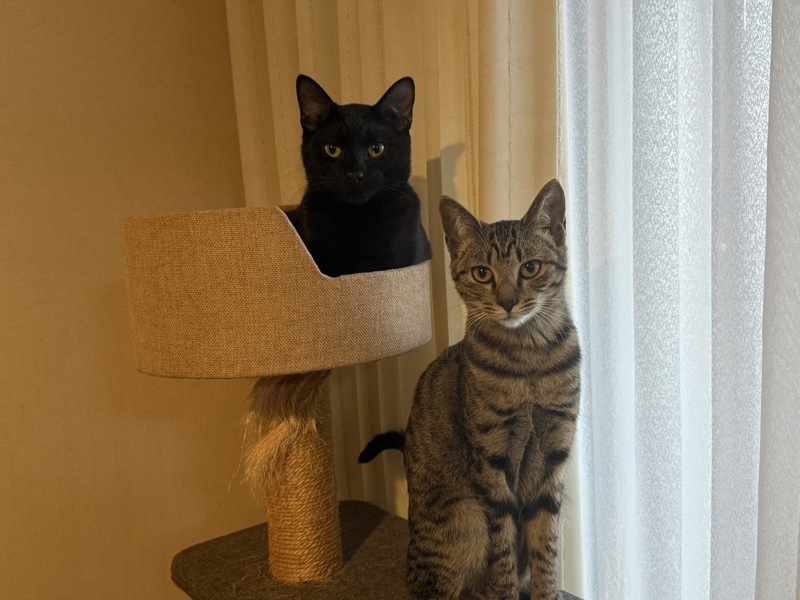| 特徴(性格など) | 雄猫黒、穏やかで少し臆病ですがとても優しい男の子です。 雌猫キジ、オモチャで遊ぶのが大好きな活発でお転婆な女の子です。 2匹とも白血病、エイズウィルス陰性です。 |