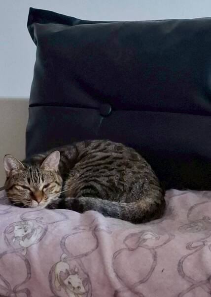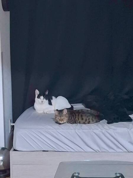 | 特徴(性格など) | ・キジトラ猫 ・とても小柄 ・静か ・穏やか ・怖がり ・猫とは仲良し ・あんずちゃんと仲良し ・ウェットフード好き ・おもちゃ遊びが好き |