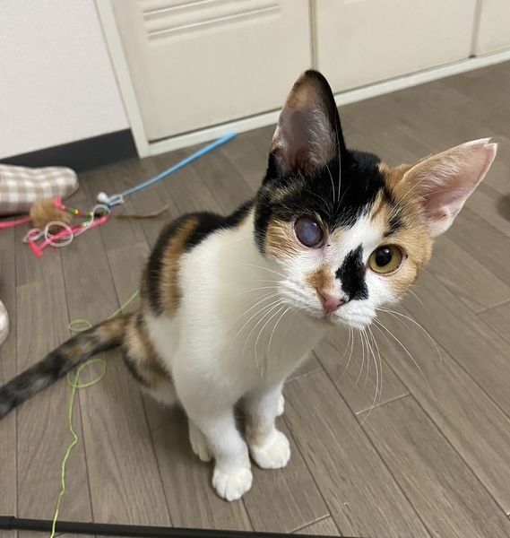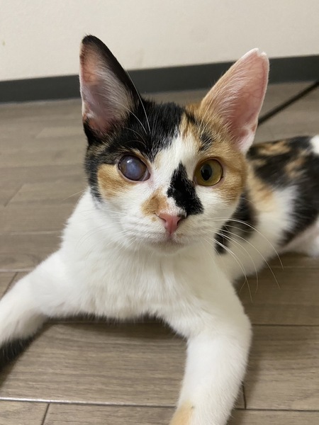 | 特徴(性格など) | 猫白血病・猫エイズ:陰性 3種混合ワクチン接種済み 駆虫済み 避妊手術済み(小さく耳カット有) ※補助金申請はしていません 右目:白濁有(目薬で治療中です。目は見えています) 体重:11月中旬現在 2.4kg |