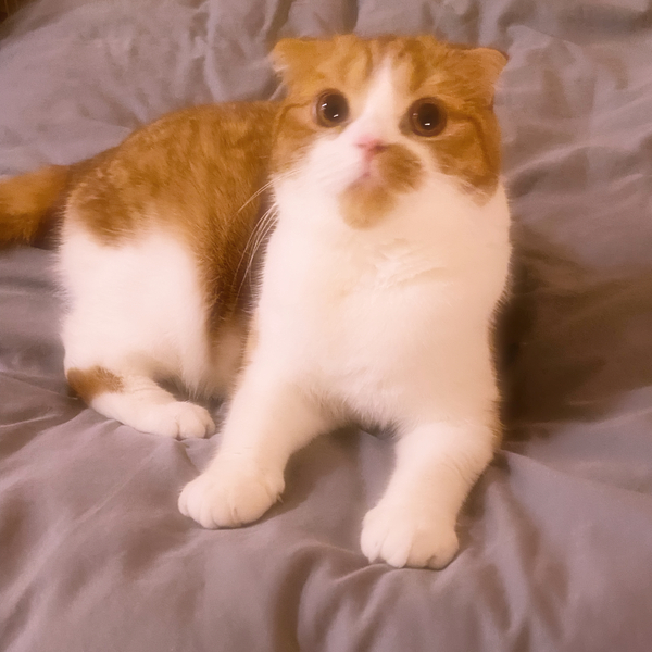 | 特徴(性格など) | ○純血種(血統書は付属しません)、茶白のスコティッシュフォールドです。2023.8.18生まれの一歳。 ○去勢手術済み。 ○チップ挿入済み。 ○性格は人懐こくおしゃべり好き。若い男の子ですから活発です。大らかな性格のため猫でも犬でもすぐに仲良くなれます。物怖じ少ないです。 ※その他詳細は必要に応じてご応募後にお話しさせていただきます。 |