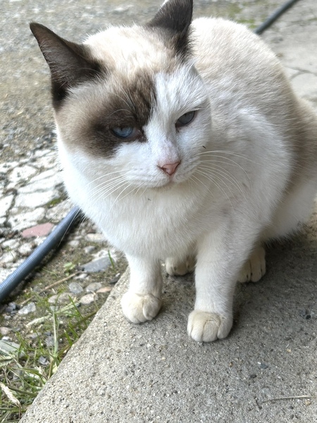 | 特徴(性格など) | 目が綺麗なブルーで、シャム系のmixです。 人馴れ抜群、しっぽを上げてすり寄って来てとても可愛いです。 ノミダニ駆除済。 食欲旺盛特に健康状態に問題はありません。 |