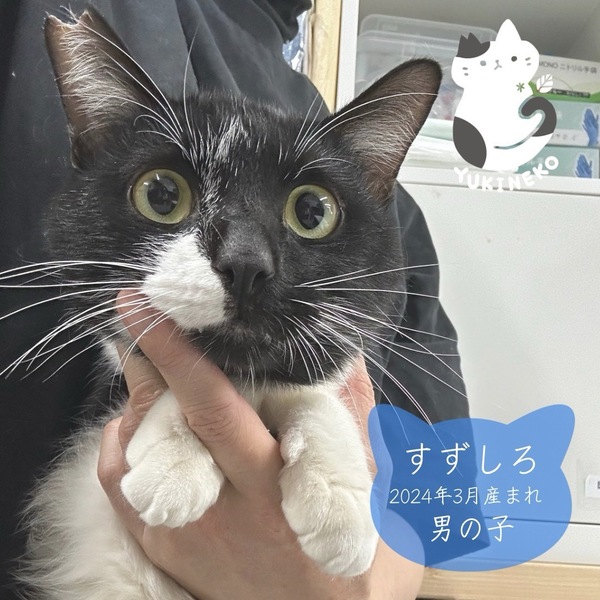 | 特徴(性格など) | 毛色:黒白 性格: 甘えん坊 体重: 3kg マイクロチップ装着: 済 飼養環境制限: 完全室内飼育 単身応募者: 可(条件あり) 高齢応募者: 可(条件あり) 初期医療処置 *3種、4種混合ワクチン済 *ノミダニ予防、内外寄生虫予防済 *ウィルス検査 済 |