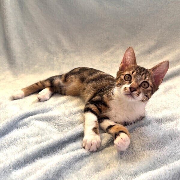 | 特徴(性格など) | 【仮名】ラボンくん 【性格】シマリスのようなタビー柄背負ったラボンくん♪ まだまだカンペキなベタ馴れにゃんこではありませんが ノビシロばっちり!の男の子です♪ 気づくとそばにいるタイプで 寝る時も気づくと枕元にいます♥ 大人ニャンコが大好きで よく一緒に過ごしているパンくんにくっついています♪ 一緒に過ごしているお友達やパンくん 子猫大好きな先住さんのいるオウチのお迎えをお願い致します♪ ※1ピキ譲渡応相談 |