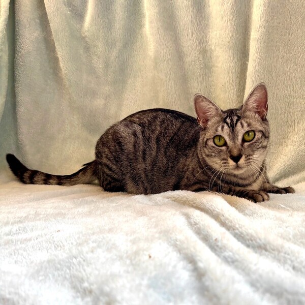 | 特徴(性格など) | 【仮名】ナナミンちゃん 【性格】まあ器量よしのナナミンちゃん♪ キレイなサバトラ&長いシッポが美魔女的?にゃんこです♪ ナデナデは大好きなので「撫でてもイイわよ~」な感じで そばでクネクネしちゃいます(笑) でもある距離感以上はダメ~という いわゆるツンデレの極みですね♪ 周りのネコには気遣いできて周りを立てる出来た一面もあり 天才肌という言葉がぴったりです♪ 先住猫ちゃんがいてもOKですしイチピキでラブラブもOKですよ! ※1ピキ譲渡可 |