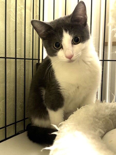 | 特徴(性格など) | すごく可愛い顔してます まだビビりですが触れます。 怖がりですが大分慣れて来て隠れなくなってきました。 小柄です。同室の先住猫の行動ををしっかり観察し 上手に付き合えています。 |