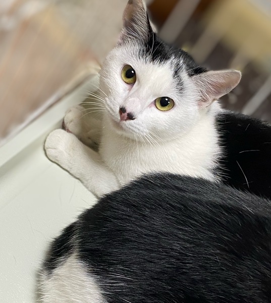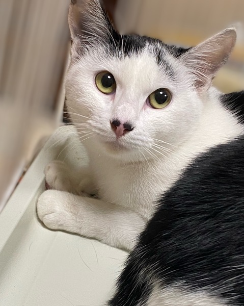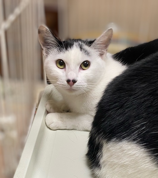 | 特徴(性格など) | 黒白の推定6ヶ月くらいの女の子です。 姉妹猫のラテと一緒に仲良く過ごしています。 甘えん坊だと思いますが、臆病な面もある子です。 少しおとぼけ顔に見える柄がかわいい子です。 |