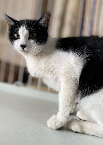 | 特徴(性格など) | 白黒のバランスの良い女の子です。 餌をもらっていた民家に入りたいと甘えていたという事なので、甘えん坊な子だと思います。 姉妹猫のオーレンと仲良く過ごしています。 |