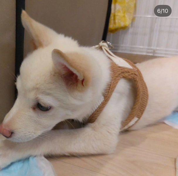 | 特徴(性格など) | 人慣れやお散歩練習、社会化トレーニングをしています。 触ったり、抱っこしたりできます。ご飯もたくさん食べて、毎日元気に子犬同士で遊んでいます。 活発な子犬です。遊び好きで犬も好き!運動量が必要だと思われます。 体重増加が緩やかなため、あまり大きくならないと思われます。 |