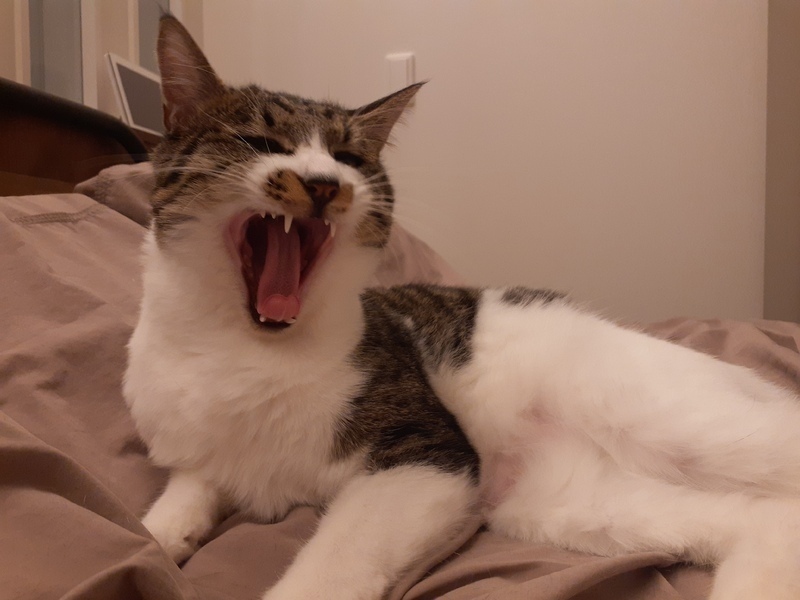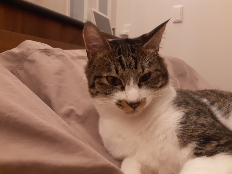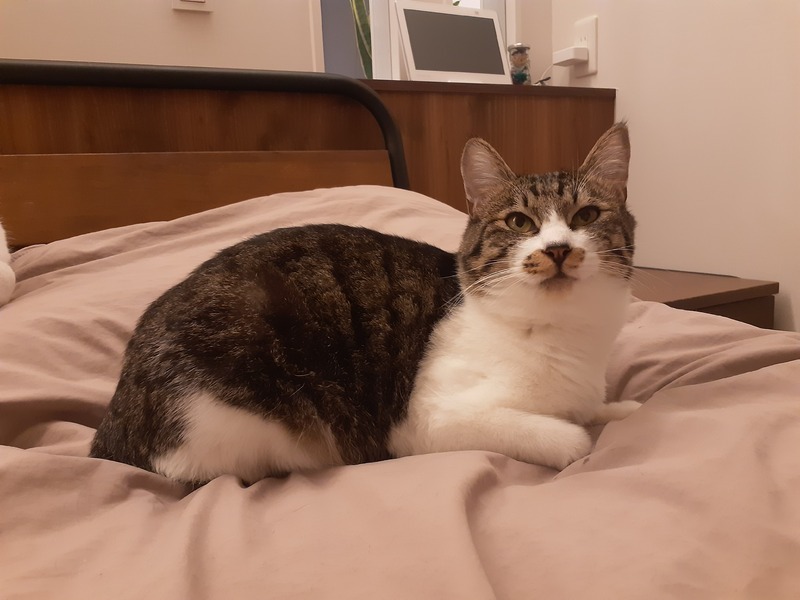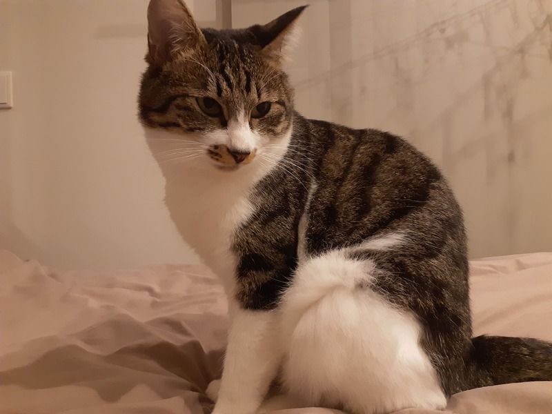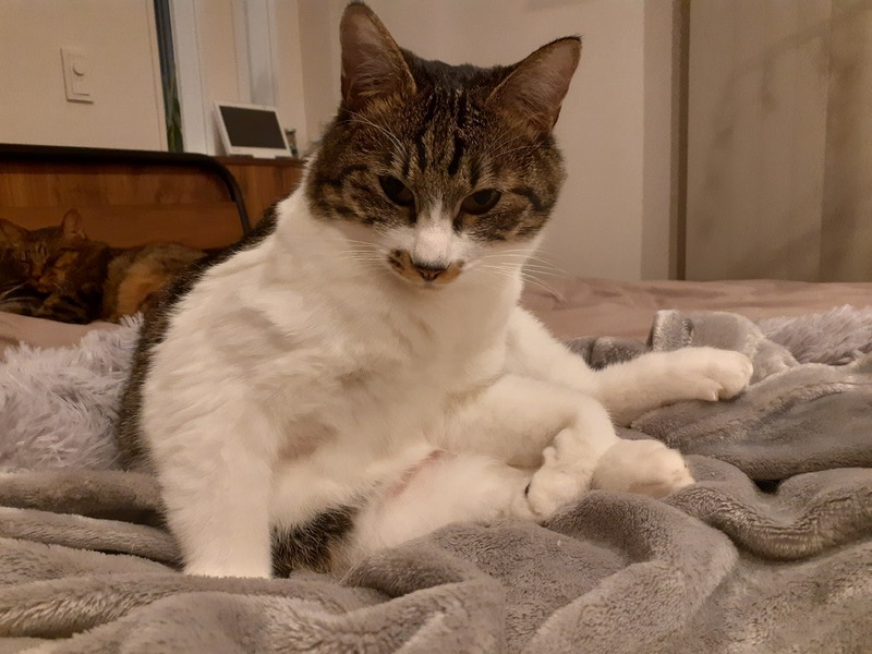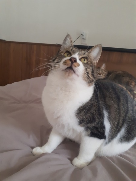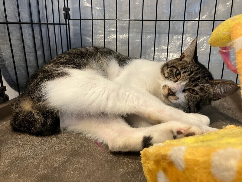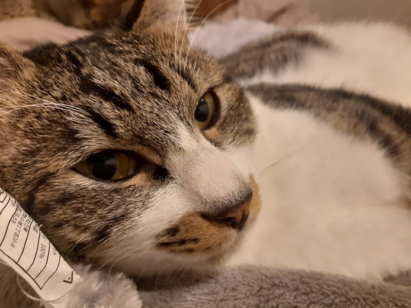 | 特徴(性格など) | 特徴 ・濃いグレー×白のキジ白 性格 ・甘えん坊 ・ナデナデ・ポンポン好き ・穏やか ・最初は人見知り ・おもちゃ大好き ・イタズラ好き ・賢い ・人とも猫とも仲良くできる |